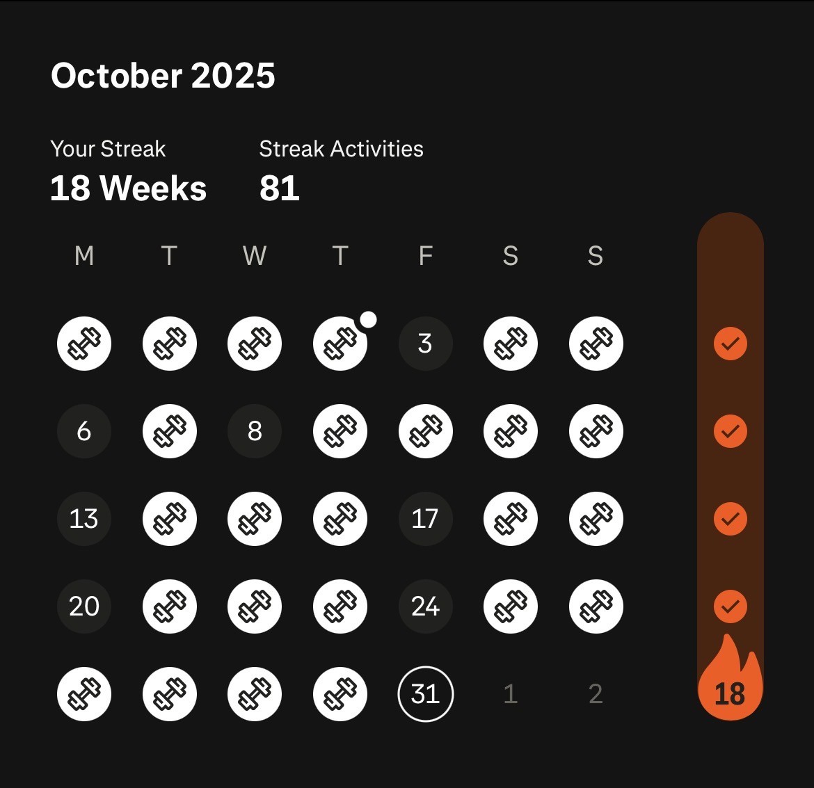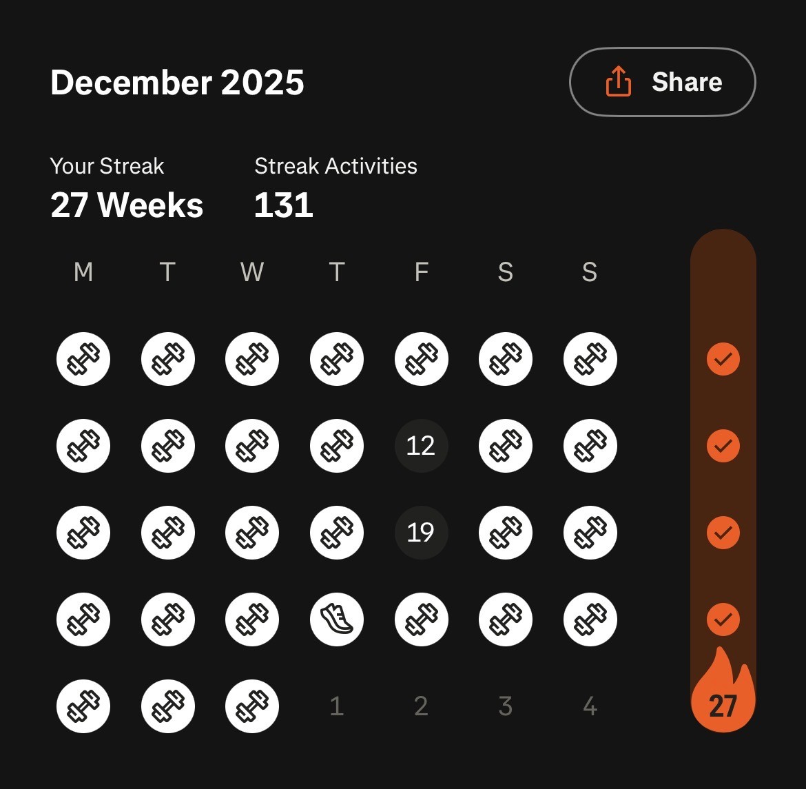 • Over the last 12 months, I’ve run every week, covering 20+ km in all weather conditions.